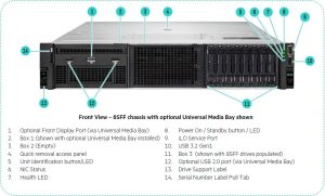 نمای مقابل سرور HPE ProLiant DL380 G11 8SFF chassis with optional Universal Media Bay shown